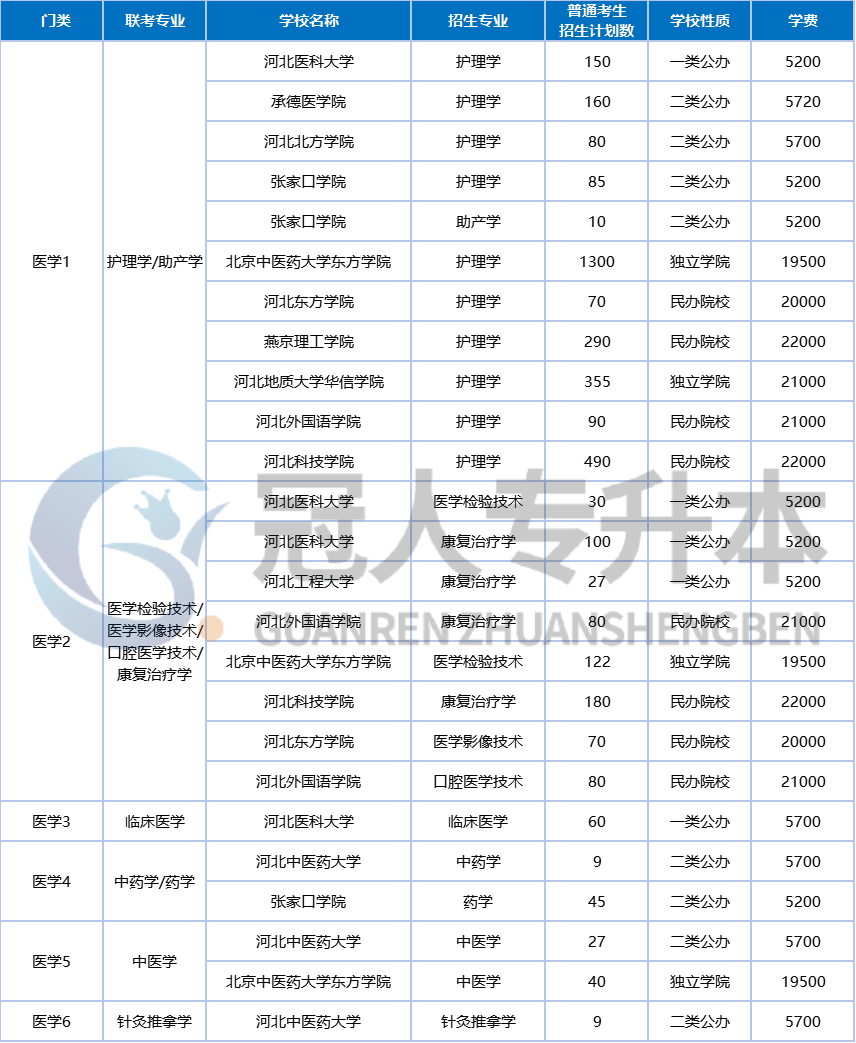 目前,河北省共有12所本科院校招收医学类专升本学生,其中公办院校占6所。