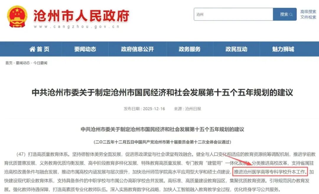 这意味着沧州医专的升本计划已经纳入地方发展规划,获得了强有力的政策支持。