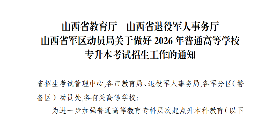 山西省也发布了关于26专升本工作通知。